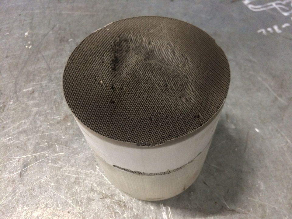 2. Катализатор забился. Забивается он по-всякому, например налётом горелого масла (если имеется масложор по каким-либо причинам). Так как катализатор — это керамический элемент с мелкими сотами — забить его несложно. Симптомы — машина стала тупее на разгон, или вообще еле едет, расход топлива поднялся. Зачастую сопровождается чеком (та же 420я ошибка по кату). Суть, я думаю, всем ясна — в выхлопе "пробка" из забитого ката. Из прочего негатива — в таком режиме двигатель быстрее изживает свой ресурс. Удаляем кат — машина попёрла, расход упал, из глаз капают слёзы счастья.