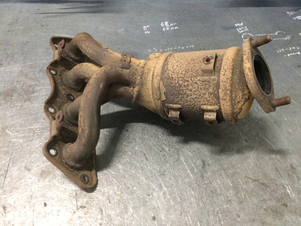 3. Катализатор оплавился. Это чаще всего происходит из-за проблем с зажиганием, один из модулей полетел например. В силу неисправности не всё топливо сгорает в цилиндре и летит прямиком в горячий катализатор, где благополучно догорает, раскаляя его докрасна и оплавляя. Получается то же, что и во втором пункте — пробка в выхлопе. Опять повышенный расход, плохой разгон, повышенная нагрузка на двигатель. Удаляем — радуемся.