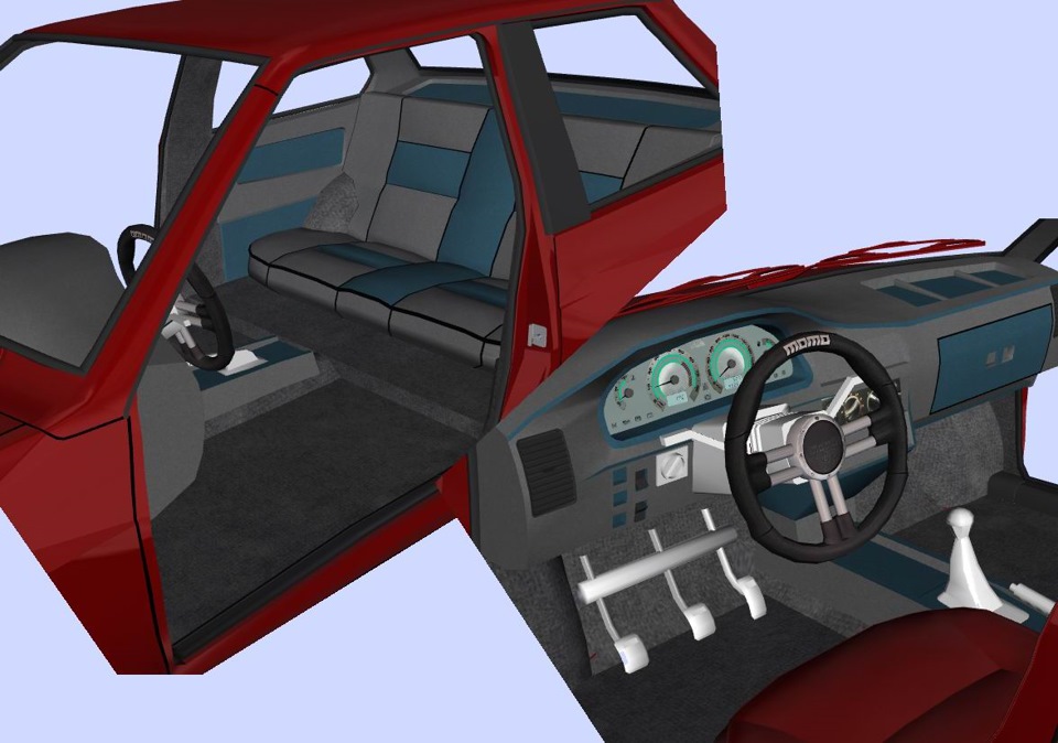 По началу начинал делать машину в Zanoza Modeler, это редактор разработанный нашим советским человеком для моделирования в игры) а потом я эту машину перенес в 3ds max и начал его осваивать благодаря этому проекту. Скрин салона из Занозы