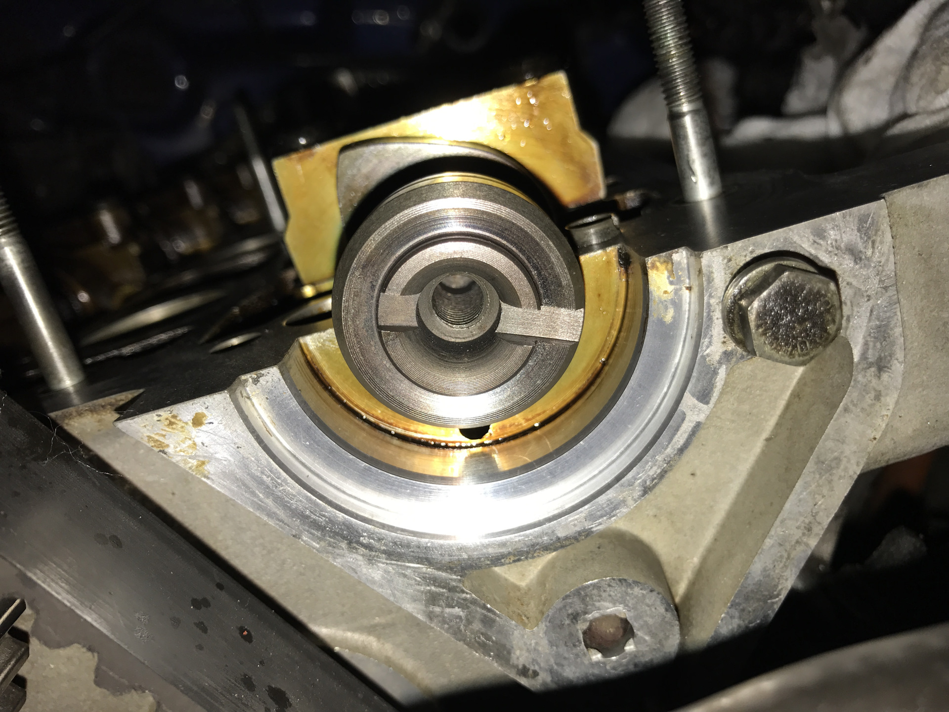 Сальник заменён, прокладка заменена. Заодно поставил снятые при замене МСК маслоотражающие щитки на впускном валу. www.drive2.ru/l/4530251/