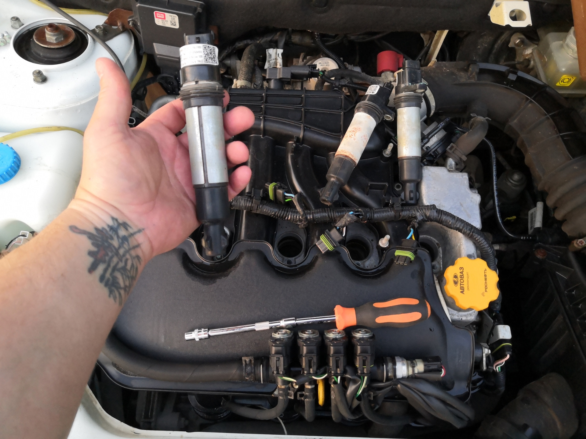 Выкрутил свечи, , продул цилиндры… Ставлю на место, зажигание… Заработало! Поехал домой и дык, дык, дык тпррру! Пропуски зажигания в цилиндре, топливоподача прекращена!