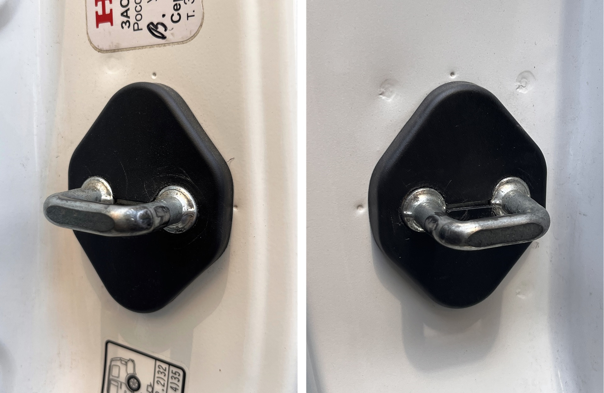 Ну и забыл рассказать, что с Али пришли пластмасски в дверные проёмы, и были поставлены ещё до отпуска. Подобные я уже ставил в Зефирррку, и там они мне очень понравились, а тут и на крепления ограничителей передних дверей как-то врастопырку встали заглушки (хотя на задние абсолютно нормально), и на петли замков еле налезли (но вроде держатся)… Пока решил оставить, катаюсь, держатся… Вид с ними мне нравится всё равно больше, чем без них, но от лучшего качества исполнения не отказался бы.