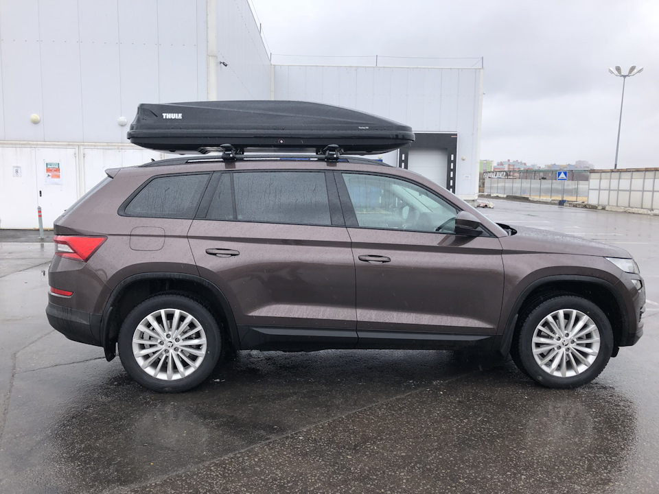 Как то летом с другом посещали разные автосалоны подбирая ему новую машину.Зашли и в Шкоду, там стоял Кодиак .Друг смотрен седаны. Я же как только увидел его, то сразу понял что это будет мой следующий автомобиль. Посидев внутри, поглазев и пощупав весь салон, а салон в нем очень хороший по вместимости, да и ещё и третий ряд сидений- это то что Нужно. Прошло время, наступила осень, затем зима и пришла весна… Видно у меня наступил весенний кризис, и я почему то вбил себе в голову, что нужно менять свой Форд Куга 2013 г. на новый автомобиль.Убедив в этом жену пошли по автосалонам. Нужна была комплектация Дизель, третий ряд сидений, причём захотели кожу и с памятью, вебасто и задний климат для второго ряда пакет семейный и зимний . Объехали три ближайших салона рядом с домом, и выбор сделан. Чёрный Коди 2.0 дизель, цифровая панель приборов, кожа-рожа третий ряд пакет семейный и на 19 колёсах. В подарок зимние колёса r18, ковры в салон первого и второго ряда, секретки на колёса, зелёная сумка автомобилиста, сетка в бампер + (шумка арок антишум PRIM -5000₽)