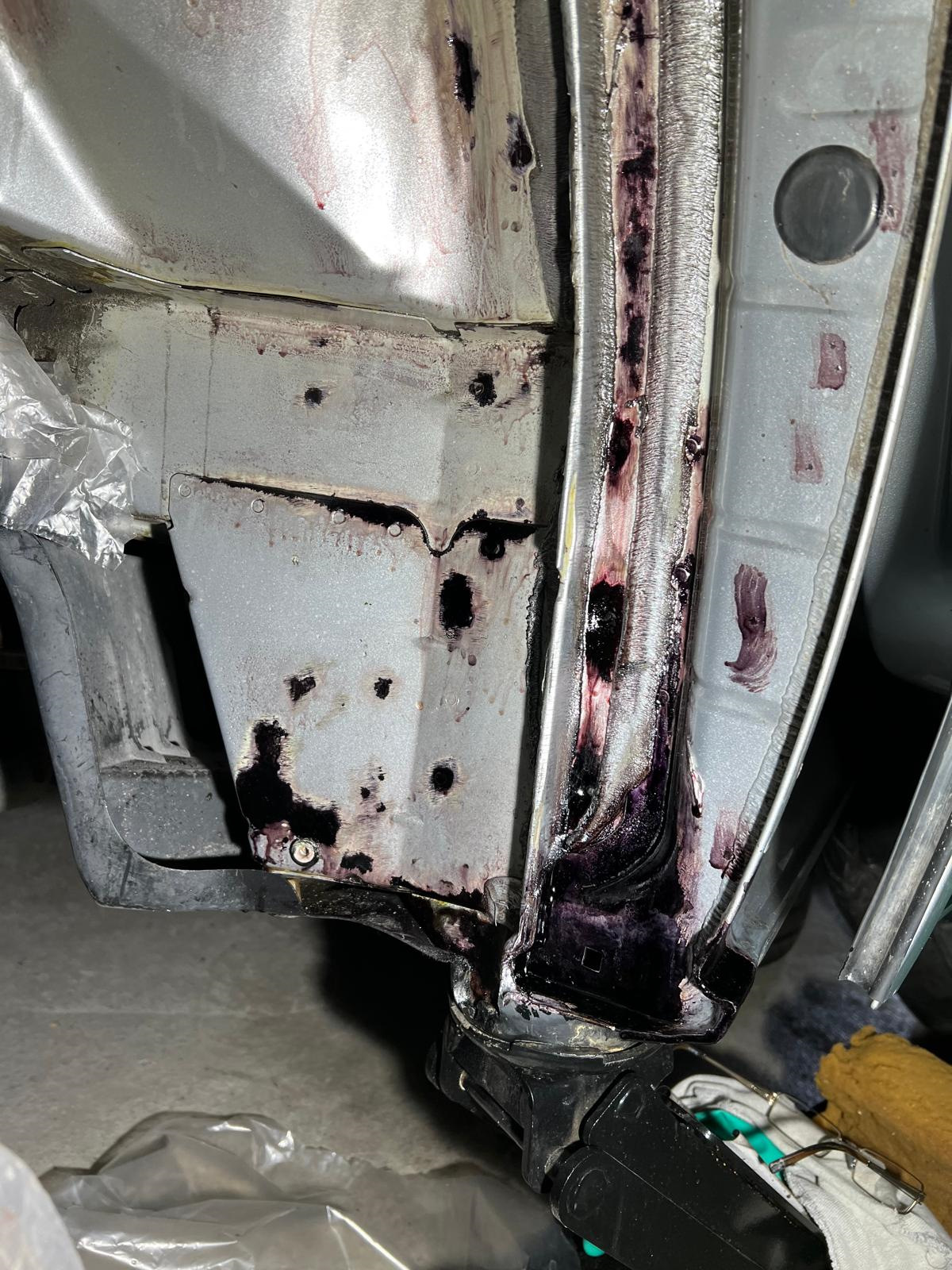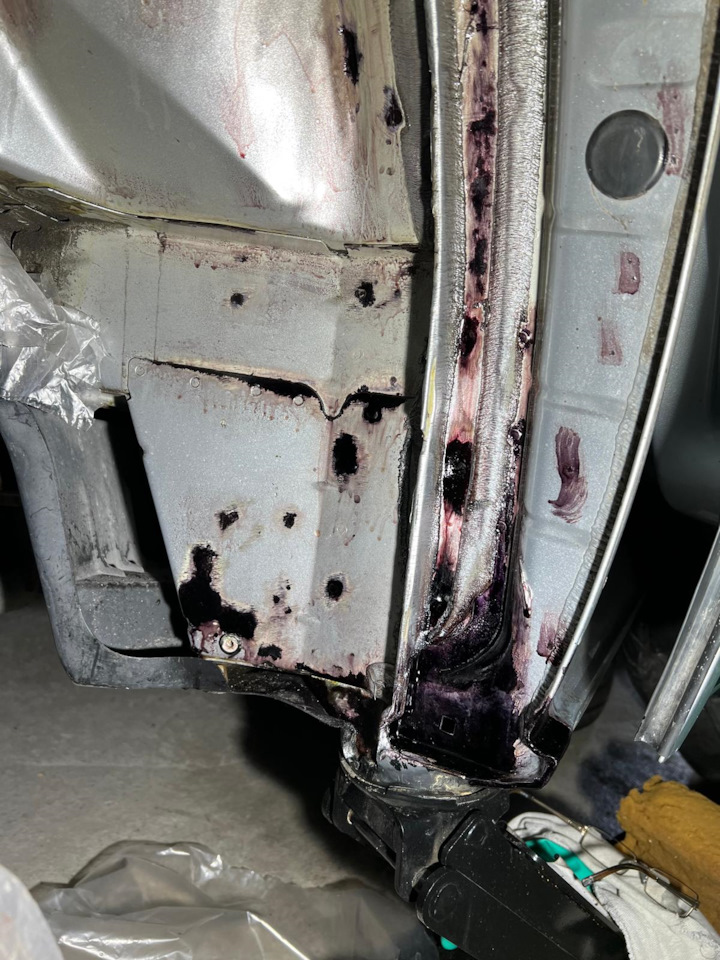 фотка после первого этапа смывки ржавчины кислотой, на данный момент сделал только водительскую половину, теперь жду весны.